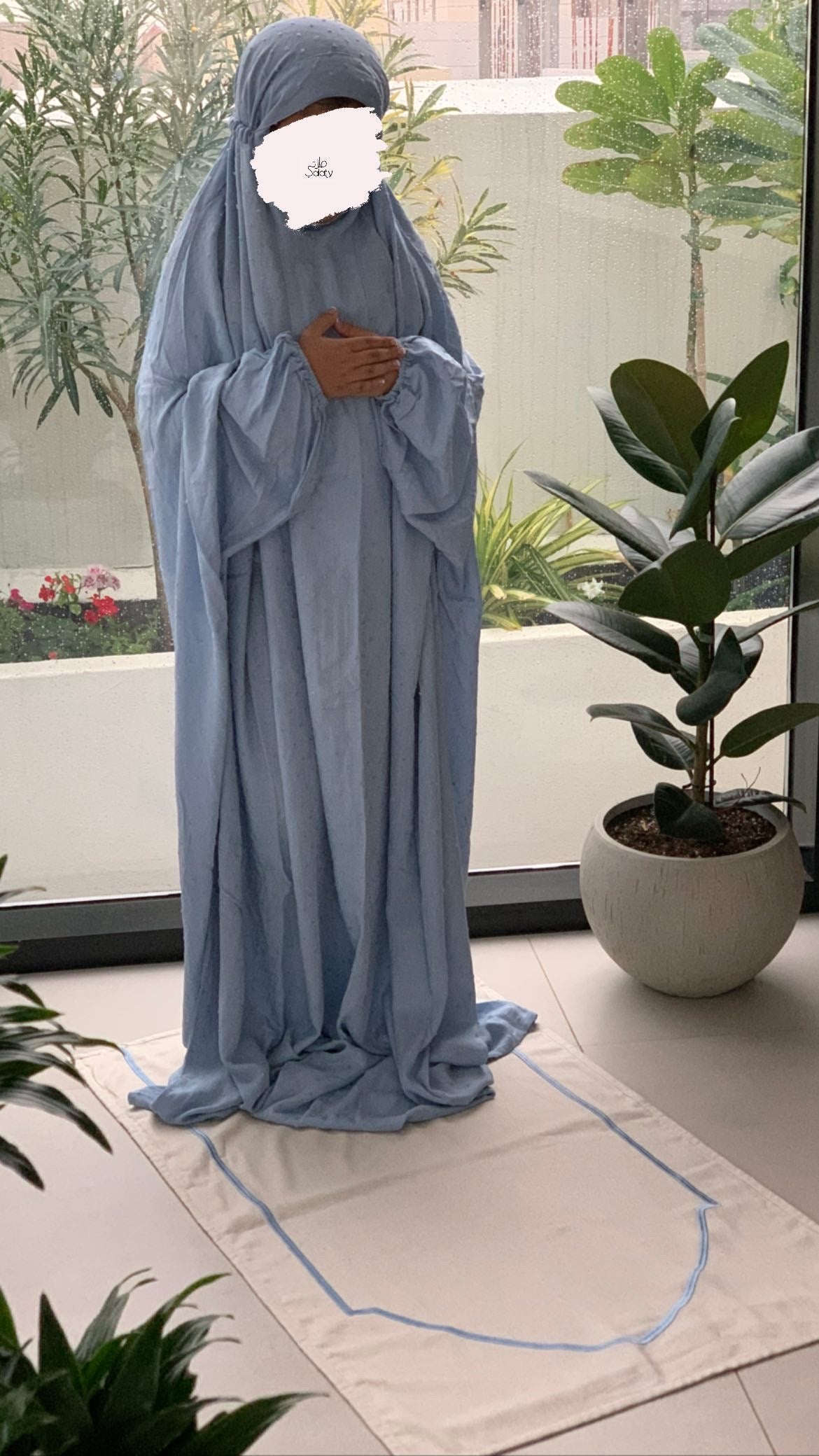 ثوب صلاة قطن أزرق بدون سجادة